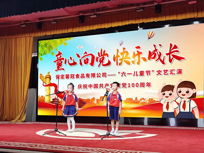 為慶祝中國共產(chǎn)黨建黨100周年,2021年5月30日保定馨冠食品有限公司于馨冠文化藝術(shù)館舉辦“童心向黨 快樂成長”暨六一兒童節(jié)文藝匯演活動。