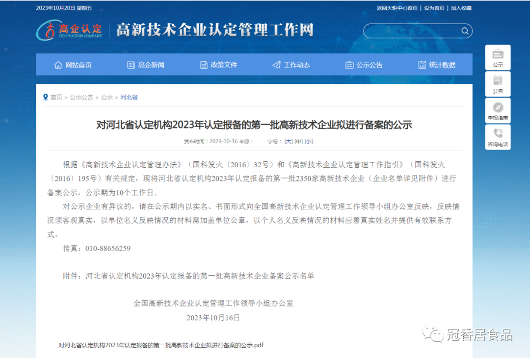 恭喜冠香居公司被認定為河北省高新技術企業(yè)