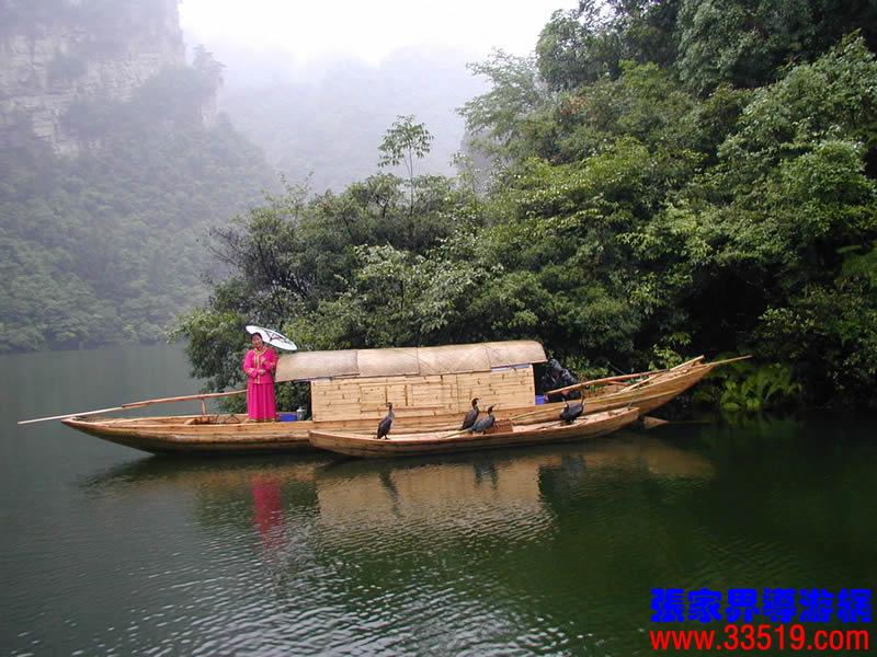 (鸕鶿捕魚)大家看,那是鸕鶿在捕魚。從前,武陵源人以打獵捕魚為生。漁夫養(yǎng)一、二只鸕鶿,就等于開了半坡荒地。鸕鶿是魚的天敵。鸕鶿見魚就拼命追殺,是小魚,就一口吞了,可惜漁夫在它們的脖子上扎了個(gè)小圈兒,魚兒咽不下,卡在喉管里,只好上船吐出來;若遇到大魚,就先啄眼睛,讓它失去反抗力,再勾住腮殼,把它拖出水面。