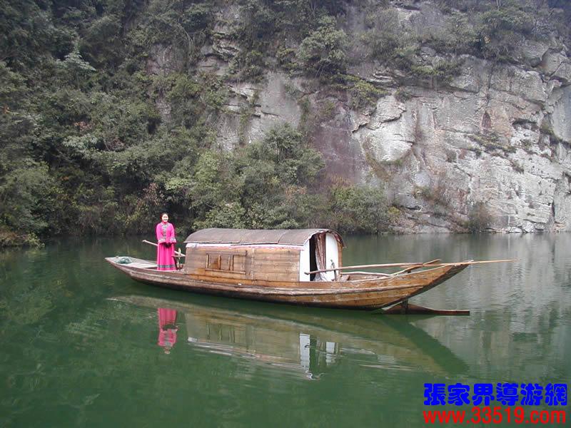 (寶峰湖)云梯直上最高層,忽見粼粼碧水深。果然高峽出平湖,人間瑤池此處尋。寶峰湖水深72米,湖長約2華里,水闊處達(dá)150余米,狹窄處公10余米,蓄水量為400多萬立方米。您腳下的這座水壩壩址,在我國水壩選址筑湖史上,堪稱奇跡:壩高80米,最寬處12米,最窄處僅3米。這座風(fēng)光秀麗的山湖始建于1974年,1979年建成,主要用于山區(qū)小水電和農(nóng)田灌溉。利用它做旅游風(fēng)景資源,則是從1984年才開始的。隨著武陵源區(qū)旅游事業(yè)的蓬勃發(fā)展,這座美麗的山湖越來越為中外游客所鐘愛。