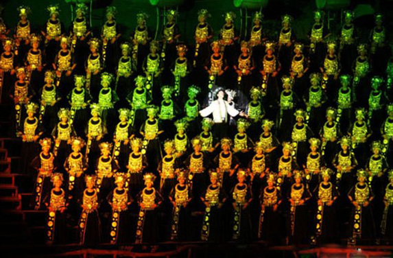 以此基礎(chǔ)進(jìn)行了藝術(shù)再創(chuàng)造,悲傷、歡樂、笑容、淚水交合成一個曲折動人的故事。整場演出體現(xiàn)人物細(xì)節(jié),以個性化的敘事結(jié)構(gòu)給人以親近感和頭尾呼應(yīng)的完整感。汲取世界豐富的音樂文化元素和表現(xiàn)形式,輔之以現(xiàn)代高科技的舞臺特效技術(shù),對世界音樂歌舞劇的一次成功的創(chuàng)新,成為中國山水實(shí)景演出的劃時代巨獻(xiàn)。