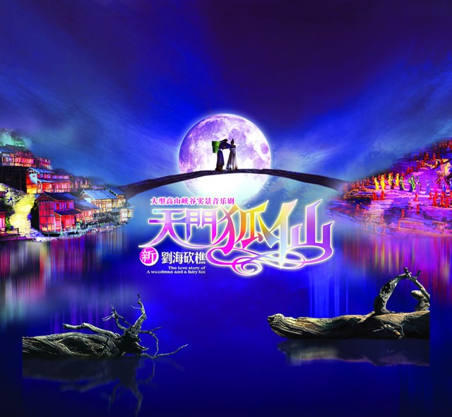 張家界大型山水實(shí)景音樂劇《天門狐仙——新劉??抽浴酚?009年9月17日晚正式開演”,世界第一臺大型山水實(shí)景音樂劇正式與國內(nèi)外觀眾見面。