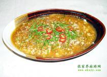 “張家界”的特色菜之一合渣,是土家人極喜歡的菜肴。以黃豆粉摻青菜溫火煮,味美易咽,營養(yǎng)豐富。