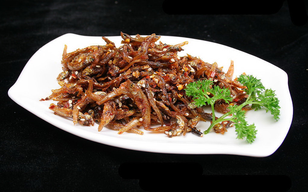 原料為小魚蝦,其中以“青皮嫩”為最佳,肉多味美,魚蝦捕撈上趁新鮮將其沖洗干凈,瀝干水,均勻地?cái)傇跓徨佔(zhàn)永铮ㄥ伾纤⒁粚佑褪顾鼈儾徽冲仯?。半小時(shí)左右,這些魚蝦就已經(jīng)焙干,一側(cè)焦黃,透出薰香,再剔去肚腸,炒豆豉辣椒或?qū)⑶嘟非嗨馇屑?xì)同炒均好,味道絕美。