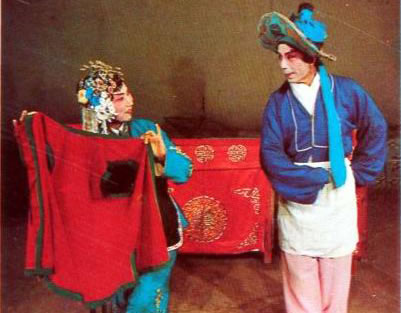 蚌殼用蔑扎骨架,蒙布或紙,外繪蚌紋,以紅綠綢鑲邊,內(nèi)貼水銀碎鏡片。由一旦一丑表演。旦扮蚌殼精,身背蚌殼,表演“扯四角”、“開蚌”、“戲水”、“整容”、“照鏡”、“戲翁”等動(dòng)作,含蓄逗趣,活潑可愛。丑扮魚翁,手持撒網(wǎng),表演“踩水”、“窺蚌”、“戲蚌”等動(dòng)作,詼諧風(fēng)趣。常令人捧腹。伴奏以弦樂為主,伴以竹笛,幽雅悅耳。
