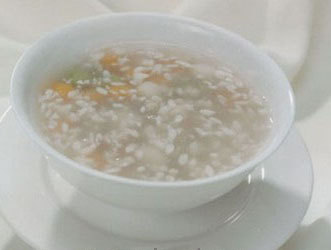 做湯倒是講究些。白粒丸和面條、米粉一樣,好不好吃憑的是那碗湯。靖港白粒丸的湯是用豬筒子骨熬出的原湯,還要放姜末、蔥花、芫荽作配料。把稍稍煮熱的白粒丸撈上來下到湯里后,還要添加小麻油、辣椒醬;還要擺一小碟干蘿卜或窄菜絲,以佐其味。