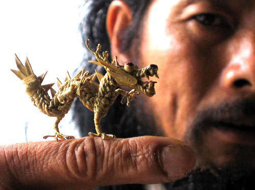 長(zhǎng)沙地區(qū)的傳統(tǒng)工藝品,系用棕櫚葉編成的各種動(dòng)物,種類很多,如鳥、蟲、魚、蝦、鶴、蛇等,形象逼真,栩栩如生。曾參加德國(guó)萊比錫世界博覽會(huì),人們贊嘆它“不可思議”,法國(guó)藝術(shù)館特意收購(gòu)珍藏。棕櫚為常綠喬木,望城縣湘江兩岸都有種植,藝人們采集棕葉,編織成各種小動(dòng)物,成為“江南一絕”。