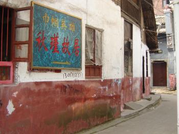 秋瑾故居位于湘潭市十八總由義巷。這位近代史上杰出的巾國英雄、婦女解放運動的先驅(qū),在這里度過了8個春秋。離大碼頭不遠處有一條寬敞的小巷叫由義巷,巷兩旁墻高院深,大多是官紳富商之家,也開設(shè)了幾家當(dāng)鋪、錢莊。進巷口十多丈遠處,有一棟青磚青瓦麻石門樓的鋪面,大門上首有一塊漢白玉石刻招牌“義源當(dāng)”,這是湘潭有名的義源當(dāng)鋪。