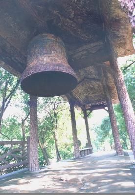 飛來(lái)鐘原為君山崇勝寺的古鐘,南宋淳佑五年(公元 1245 年),荊湖安撫制置使孟珙重修崇勝寺時(shí)復(fù)制一鐘,鐘高一丈多,大數(shù)圍,重4000余斤,上有“淳佑五年造”,鐘身上鑄有“皇帝萬(wàn)歲,國(guó)泰民安,風(fēng)調(diào)雨順,五谷豐登”16 個(gè)大字,四方凸出的部分用青銅澆鑄的四條金龍,栩栩如生,形態(tài)逼真。原鐘在1966 年被砸毀,現(xiàn)在的飛來(lái)鐘是1979 年由市閥門(mén)廠復(fù)制而成,高約2 米,直徑1.2 米,重約 2 噸。鐘身上改鑄著鐘相、楊幺起義的戰(zhàn)斗口號(hào)“均貧富,等貴賤”六字,比前者更富有深刻的含義。這口古鐘有段優(yōu)美的傳說(shuō)。相傳南宋初年,庭湖畔數(shù)以十萬(wàn)計(jì)的農(nóng)民在楊幺率領(lǐng)下,掀起了轟轟烈烈的農(nóng)民起義。相傳一天夜晚,朝廷派兵前來(lái)偷襲駐扎在君山的楊幺寨,忽然從天上飛來(lái)一口巨鐘,鐘聲陣陣,催醒義軍,奮起抗敵,因此叫飛來(lái)鐘。這是人們深切懷念楊幺起義軍,用各種方式來(lái)表達(dá)贊美之情。古鐘的傳說(shuō)便寄托了人們的這種心情。有人據(jù)此認(rèn)為,原來(lái)的飛來(lái)鐘系楊幺起義軍所鑄的報(bào)警器。