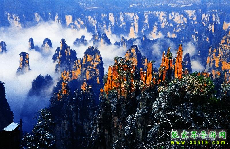 索溪峪風(fēng)景區(qū)索溪峪,西南緊連張家界,西北毗鄰天子山,面積一百四十七平方公里,有景點二百多處。索溪峪山、水、洞自成一體 ,奇峰起伏錯成趣;水,泉清瀑美,千姿百態(tài);洞,幽深神秘,其妙無比。那恍若仙境的地下宮殿黃龍洞,天然浮雕羅列、充滿詩情畫意的十里畫廊,碧波蕩漾的寶峰湖,充滿傳奇色彩的百仗峽及太虛幻境般的西海云霧,一剛一柔、形態(tài)風(fēng)格迥異的鴛鴦瀑.... 無不令人流連忘返。遠在明代中葉,就有人在巖壁題詩贊曰: “高峽百丈洞云深,要識桃源此處尋。”