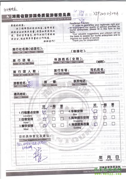 - 游客夏先生為表?yè)P(yáng)導(dǎo)游李姣姣寫來表?yè)P(yáng)信致我張家界... [14811]