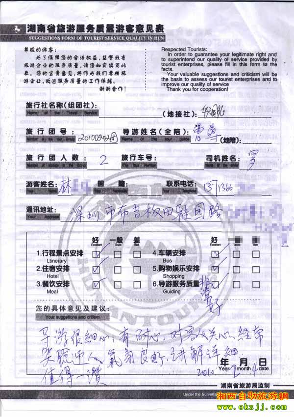 - 游客夏先生為表揚導(dǎo)游李姣姣寫來表揚信致我張家界... [14811]