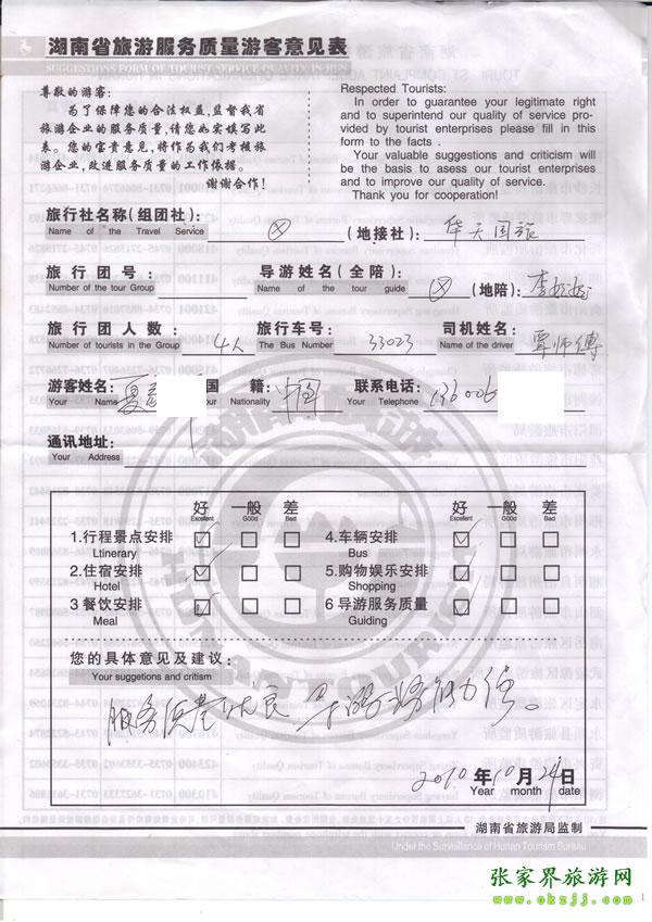 2010年10月24日 夏先生評價服務質(zhì)量優(yōu)良,導游業(yè)務能力強