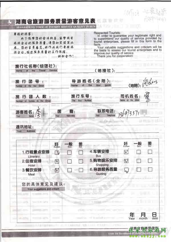 - 游客夏先生為表揚導游李姣姣寫來表揚信致我張家界... [14811]