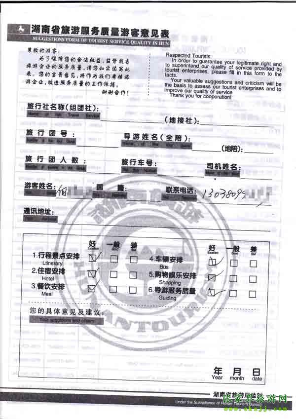 2010年10月8日何先生旅游質量反饋