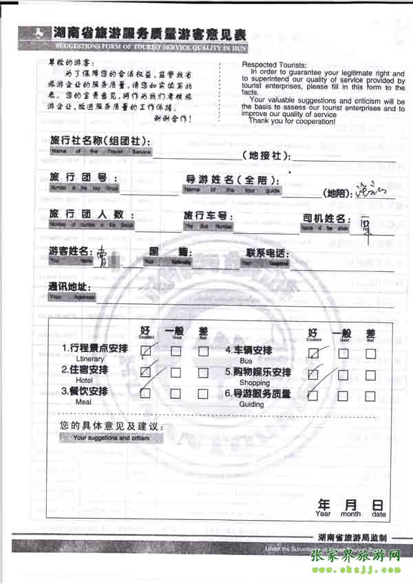 2010年10月26日曹小姐旅游質(zhì)量反饋