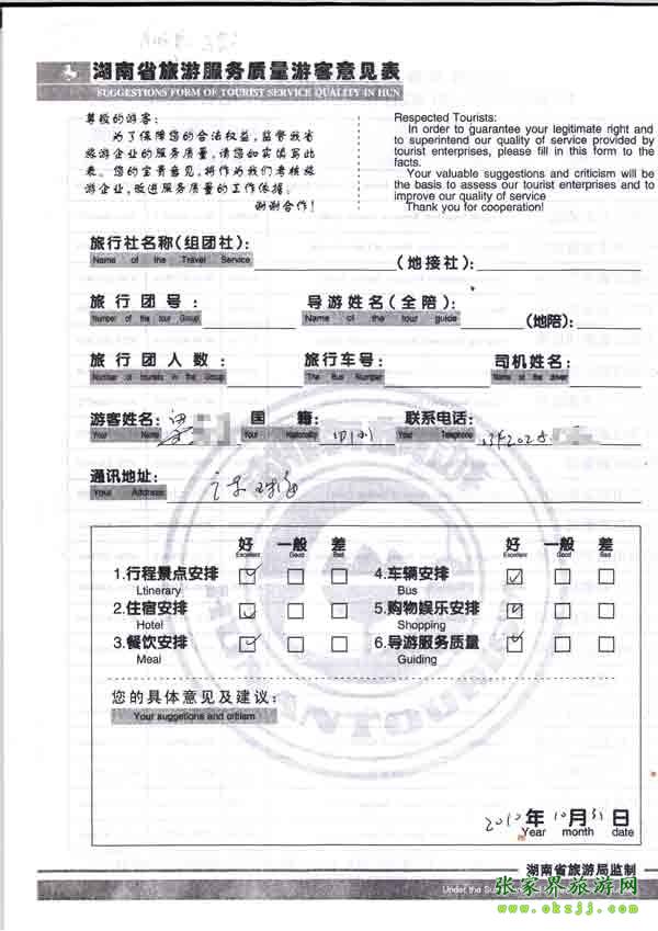 2010年10月31日梁小姐旅游質(zhì)量反饋