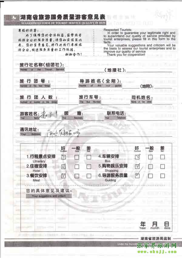 2010年8月18日河北趙先生旅游質(zhì)量反饋