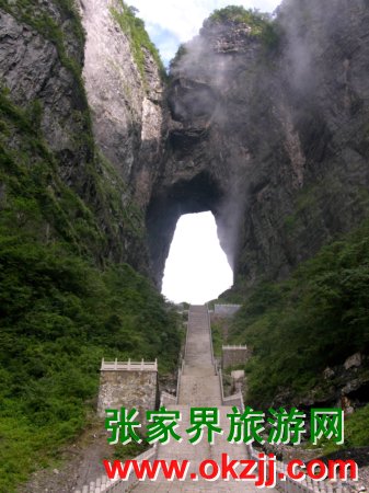 天門山古稱云夢(mèng)山,又名玉屏山。坐落在張家界市區(qū)以南10公里處。公元263年,因山壁崩塌而使山體上 部洞 開一門,南北相通。三國(guó)時(shí)吳王孫休以為吉祥,賜名“天門山”。 天門洞,位于海拔1260多米的絕壁 之上,門洞高131.5米,寬37米。據(jù)地質(zhì)專家考證,門洞中央系東西巖層向 斜的交匯處,因擠壓而導(dǎo)致巖 石破碎崩塌,最終于263年形成門洞。天門山海拔1517.9米,因與山下市區(qū)相對(duì)高差達(dá)1300多米,故尤顯 偉岸挺拔,其天際線之美,堪為山的典型。